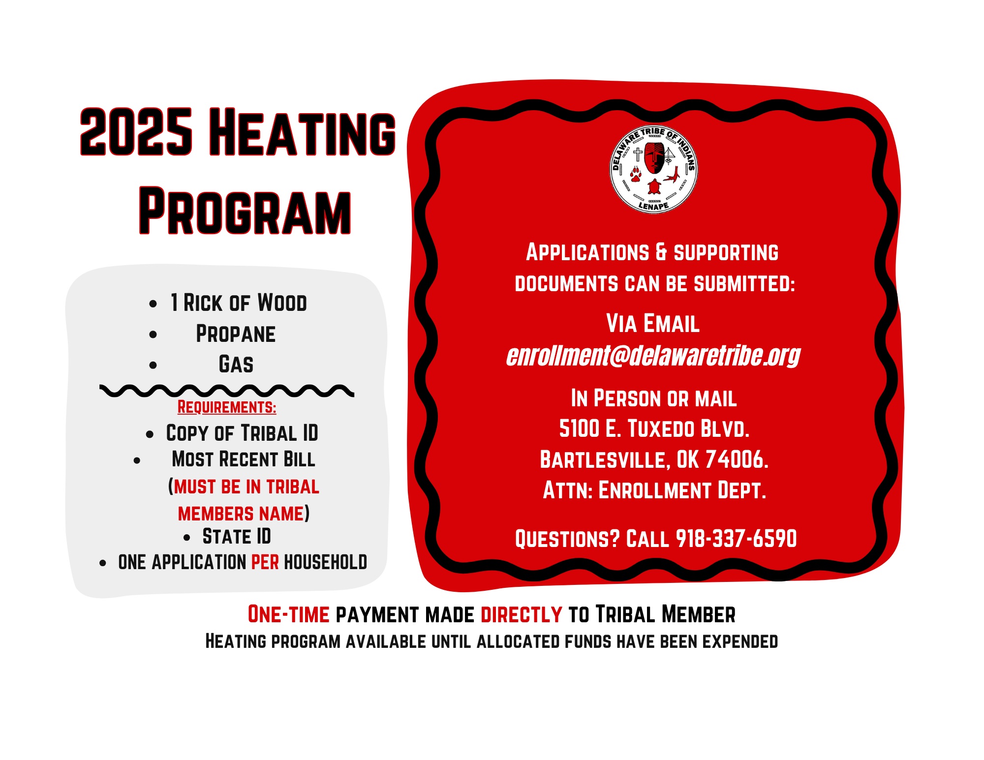 All applications must be completed in full and include a copy of your tribal ID in order to be approved for services.