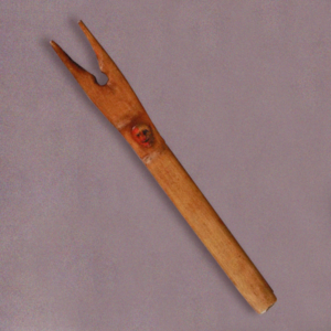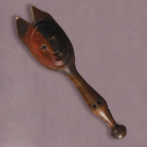 English : Wooden stick with carved face